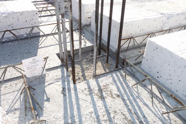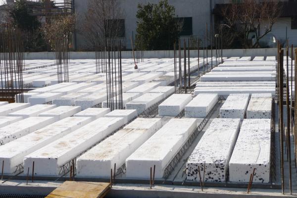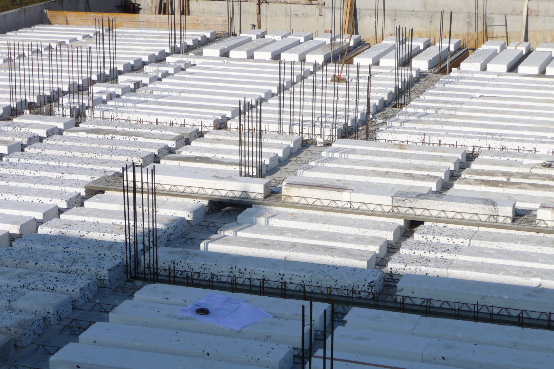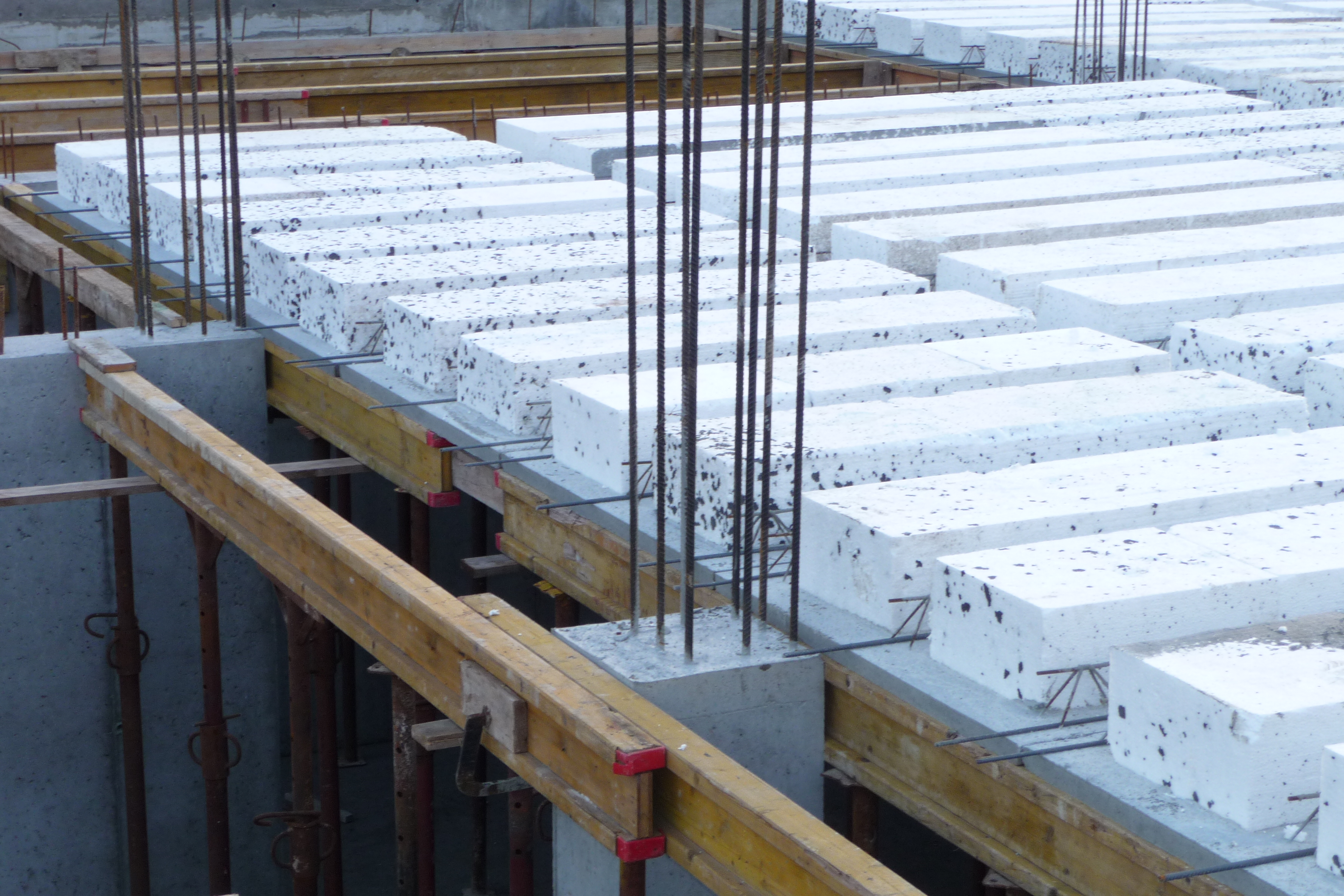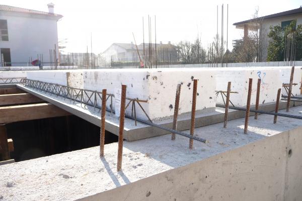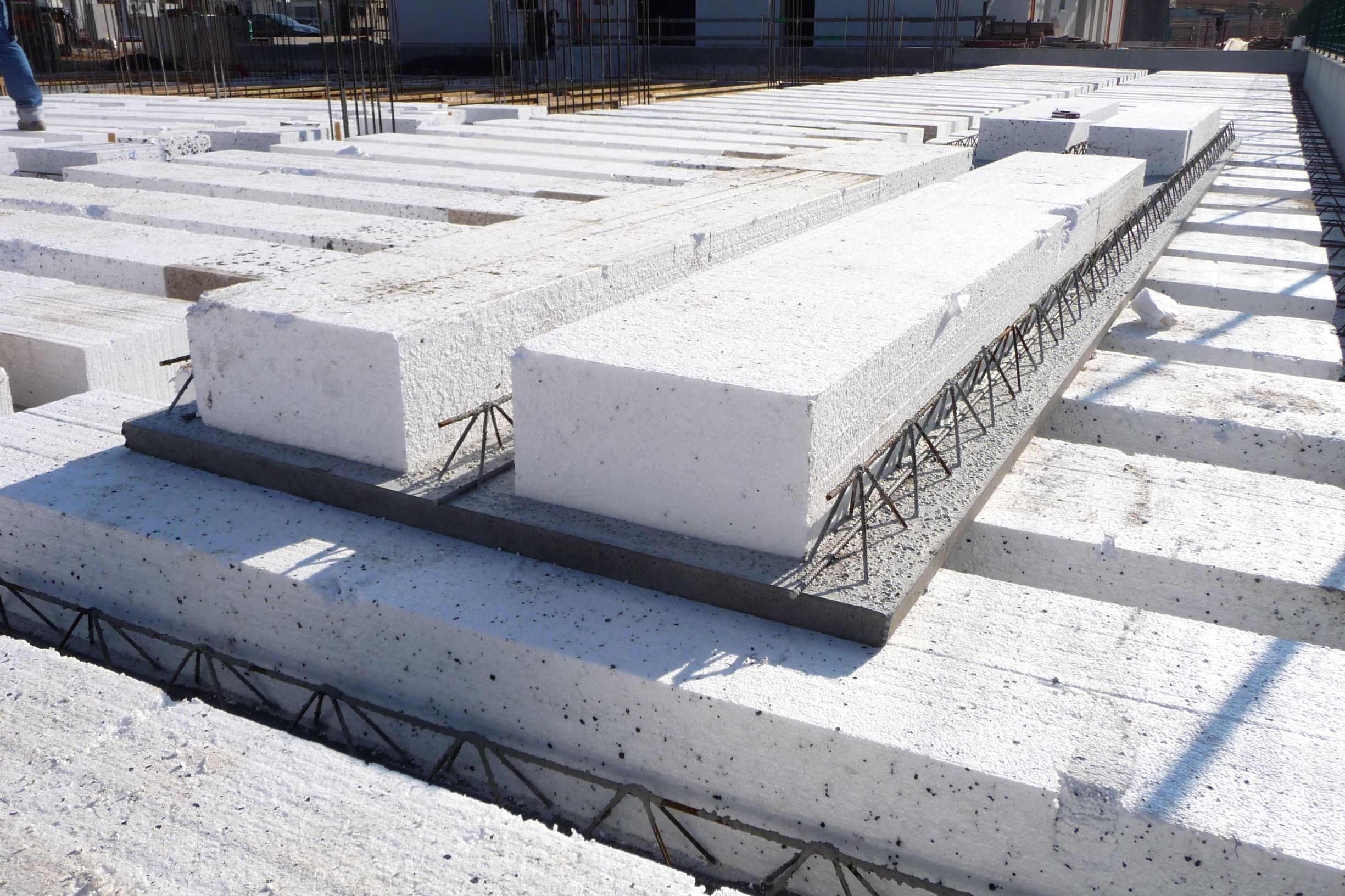 Gli alleggerimenti utilizzati sono blocchi di polistirolo espanso tagliato a misura e di altezza variabile, che consentono di ridurre notevolemente il peso del manufatto.